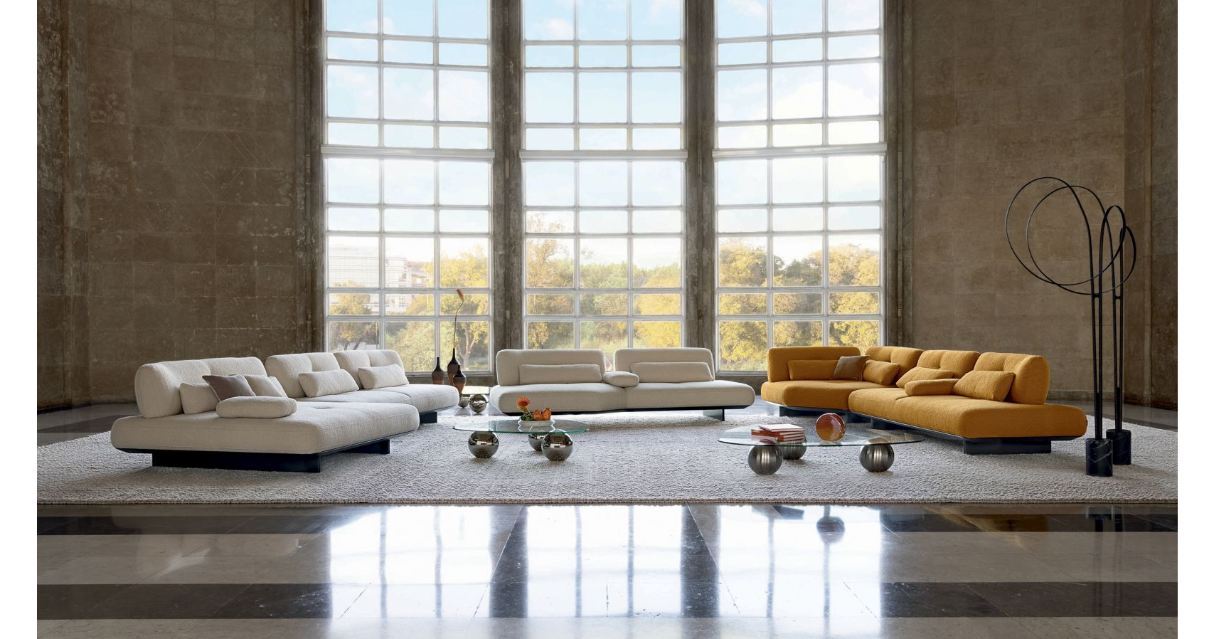 풍성한 형태의 소파와 오브제는 시각적 리듬을 더하고,