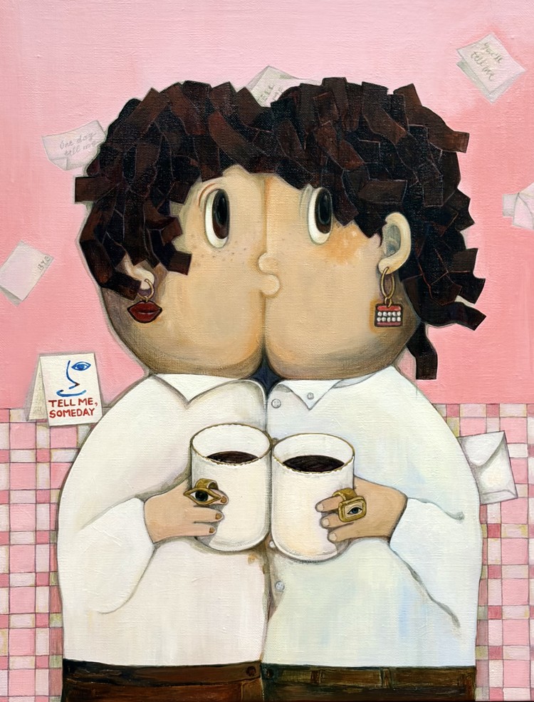 현실과 관계에 휩쓸려 본연의 언어를 잃어버린 화자는 타인에게 투영되는 여러 층위의 자아를 ‘다중적 초상’의 형태로 보여준다. 소통의 도구인 말대신 파편화된 메모로 존재하는 ‘언젠가는 말해달라’는 문구는, 자기 고백이자 자아회복을 향한 미완의 상태를 나타낸다.